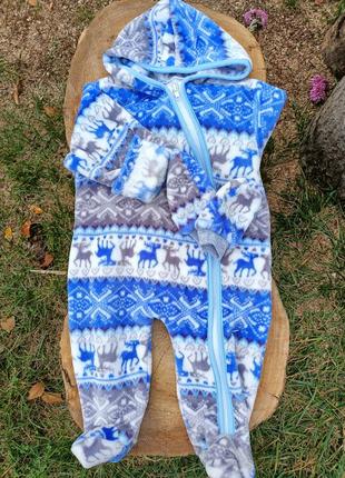 Теплый комбинезон, на ощупь мягкий и нежный. Размер 62-68