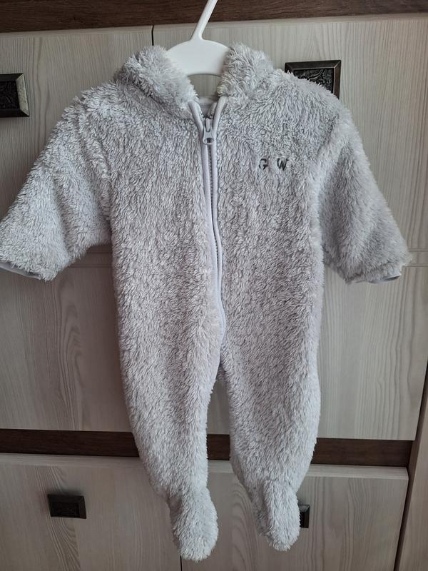Тепленький ромпер светло-серого цвета подойдет как на мальчика так и на девочку, на весну, теплую осень или зимой под комбинезон.