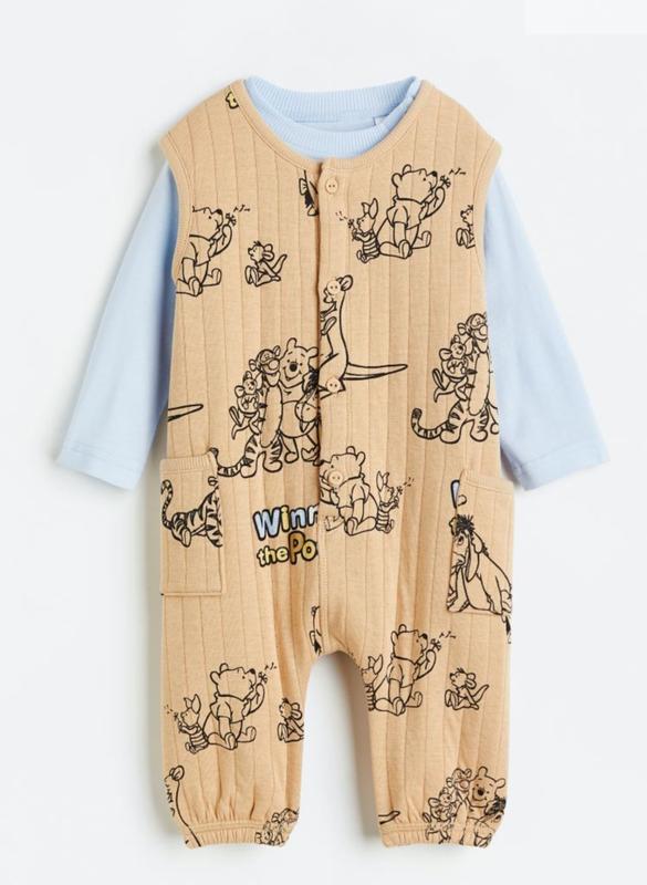 Практичный комплект-двойка состоит из комбинезона и реглана.Трикотажный реглан с длинным рукавом, круглый вырез горловины, застежка кнопка на плече у горловины.