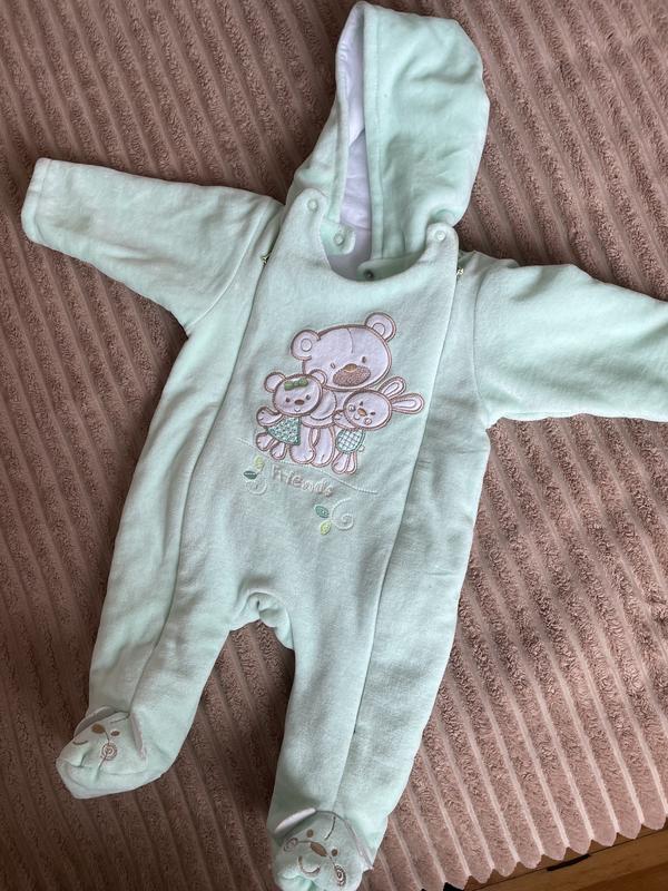 Человечек тепленький нежно-салатового цвета. Размер 62. Застегивается на две молнии.