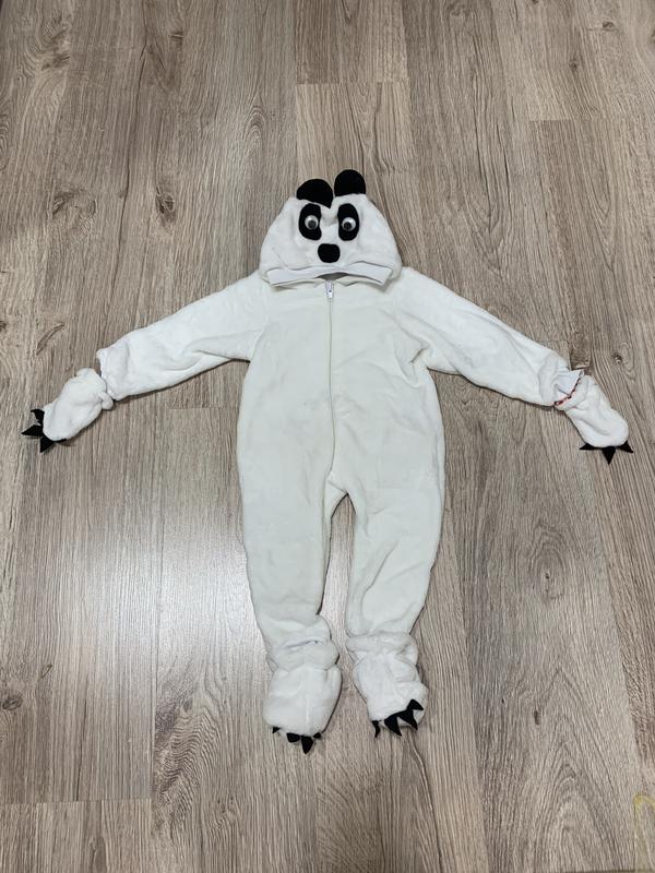 Человечек в виде панды подойдет на тематический праздник. Царапки и пинетки на кнопках, отстегивающиеся. Тепленький, мягкий. В идеальном состоянии. Длина человечка - 62 см Длина до памперса - 37 см Длина рукава - 32 см Полу обхват груди - 28 см