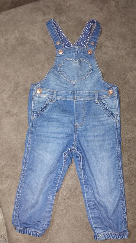 Легкий джинсовый комбез для девочки по бирке 9-12 месяцев. Кармашек спереди и 2 сзади. На штанинки на заклепках для удобной смены подгузника. Длина регулируется крок - 24 см длина - 68 см ( можно уменьшить за счет заклепок на 1 см)