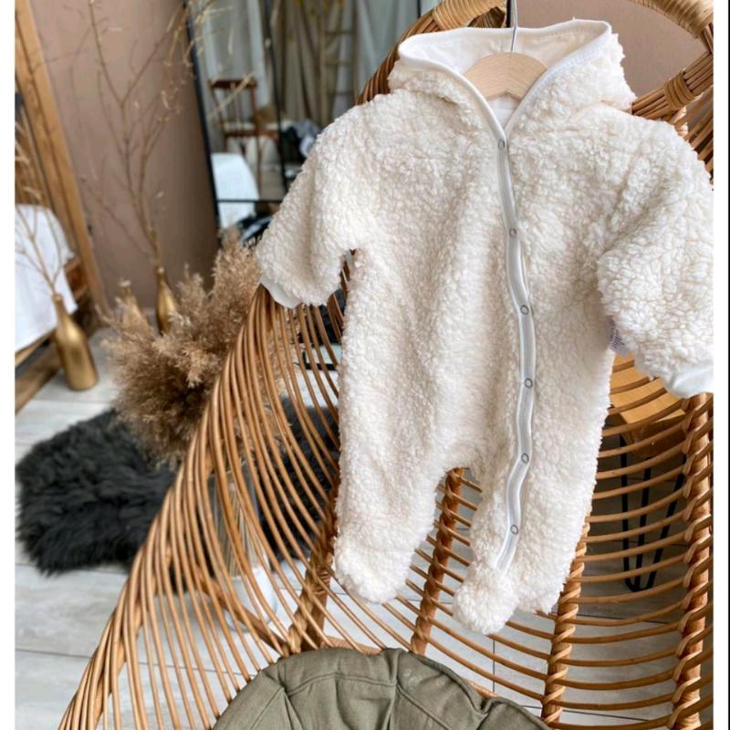 Комбинезон; Ткань: Теди; Подкладка кулир по всему комбинезону; Размер: 56; Цвет: беж, серый, молочный