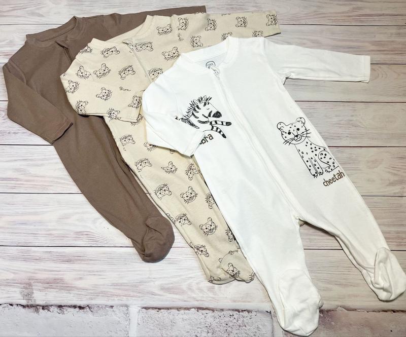 ✂️Материал: 100% органический хлопок🍃 (200 г/м²) 📏Размер: 68 см✅ 💰Цена: 760 штаб/3шт🔥 255/шт🔥 📝 Принт: дикие животные. Есть специальные резинки на стопах, которые предотвращают скольжение ног. На молнии