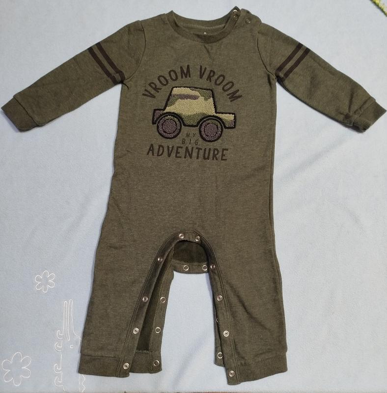 Очень классный мягенький ромпер F&F в отличном состоянии очень красивого зелёного цвета. Длина изделия по спинке от плеча 42 см, длина по внутреннему шву штанины 24 см, длина по внешнему шву штанины от подмышки 52 см, полуобхват груди 29 см, длина рукава 29 см. Ткань на флисе, тянется. Модель 4459