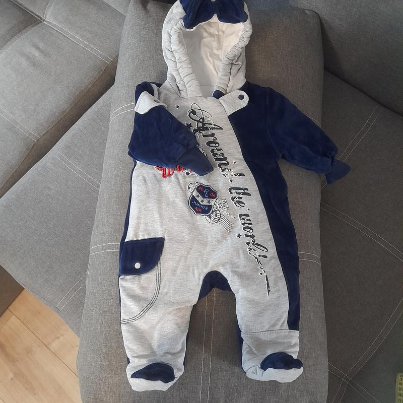 Тепленький трикотажный комбинезон. Размер не указан, есть замеры на фото.