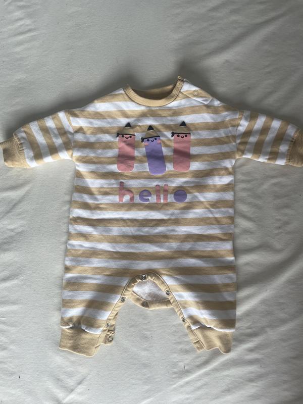 Утепленный слипик-ромпер с очень милым принтом. Был одет 3 раза. Недостатчик на последнем фото, на обеих ножках нет последней заклепки, но с носочками в самый раз😍 Размер 62 см, 0-3 месяца