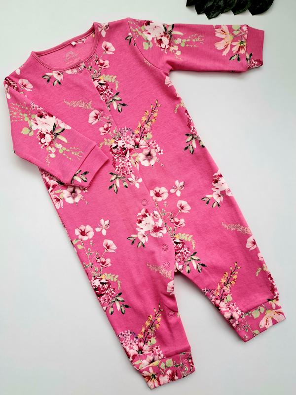 Невероятно красивые ромперы Nехт для девочек. Круглый вырез, застежки на кнопки, манжеты, ножки открыты. Расщепляется по всей длине, благодаря чему малышка будет легко переодевать. 100% хлопок, премиум качество. Размер 74 (6-9 мес.)