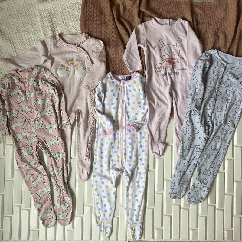 набор 12-18 и 18-24 месяцев. один из них теплый велюровый, остальные коттон. длина до пяточки 64, 67, 67, 72 и 72 см состояние очень хорошее за 5 штук 360 грн