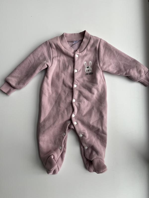 Теплый флисовый человечек с закрытыми ножками розового цвета. На возраст 1-3 месяца