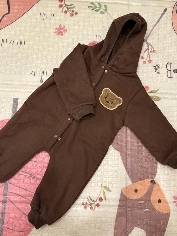 Новый комбинезон на флисе универсального коричневого цвета. 74 размер