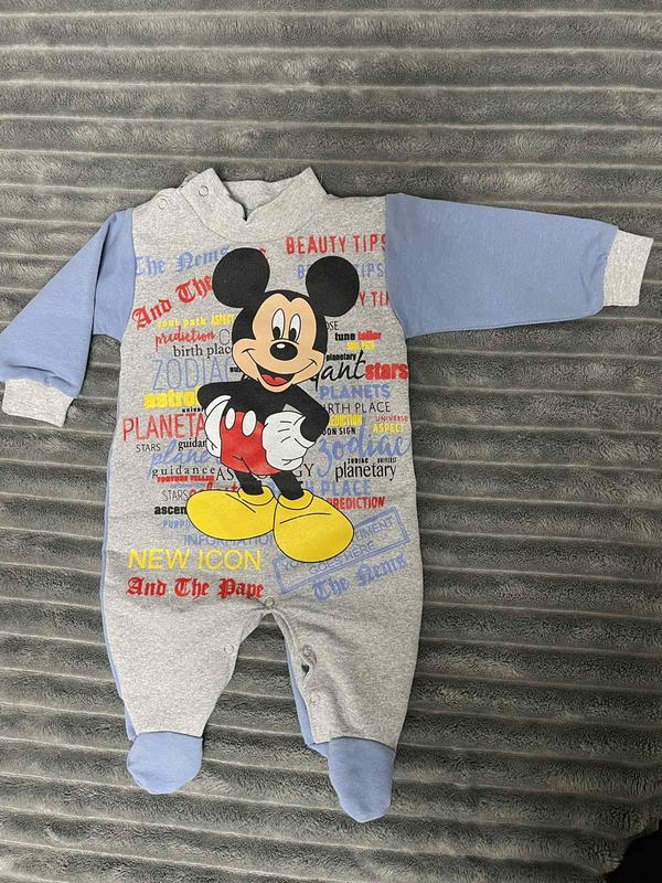 Продам теплый, яркий человечек (ромпер, комбинезон) с красивым рисунком микки маус на 3-4 мес. Стан идеален, одевался всего несколько раз.