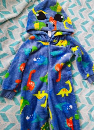 Теплий м'який чоловічок, дитяча піжама, комбінезон динозаврик, на замочок, широкий капюшон з дирозавровими зубцями. стан дуже хороший, носили мало. довжина від плеча 78 см. розмір на 2-3 роки, можна і довше носити.