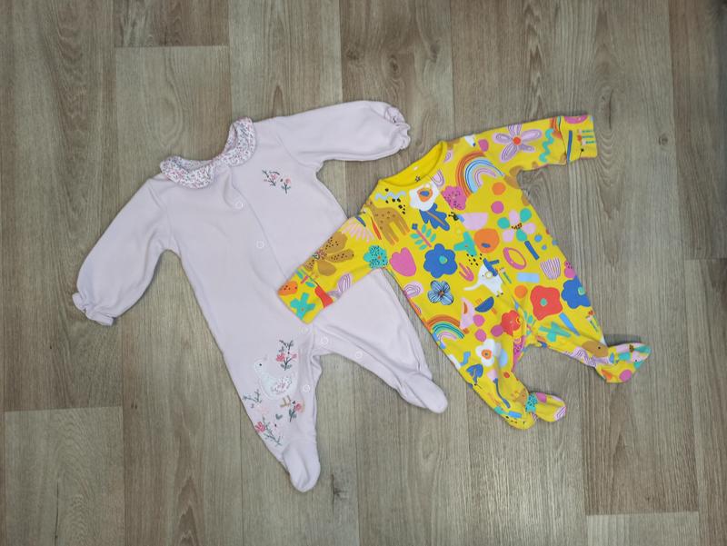 Чоловічки для новонародженої дівчинки, в ідеальному стані, один ніжно рожевого кольору, більше навіть пудра, а інший яскраво жовтого кольору, ціна вказана за 2 шт. Зверніть увагу, розраховані на різну вагу немовля.