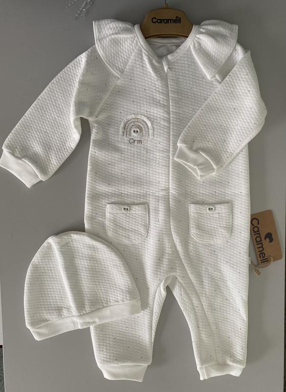 Новый комбинезон с шапкой от фирмы Caramell 100% натуральный хлопок Размеры 62-68, 68-74, 74-80.