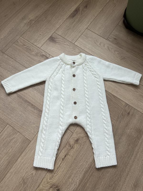 Вязаный человек одет 1раз на фотосессию, указанный размер 9-12, однако маломерит, максимум 3-6 месяцев, мы одели в 4