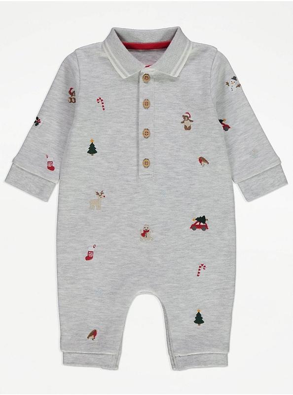 Рождественская серая вышитая рубашка-поло/слип/человечек all in one george