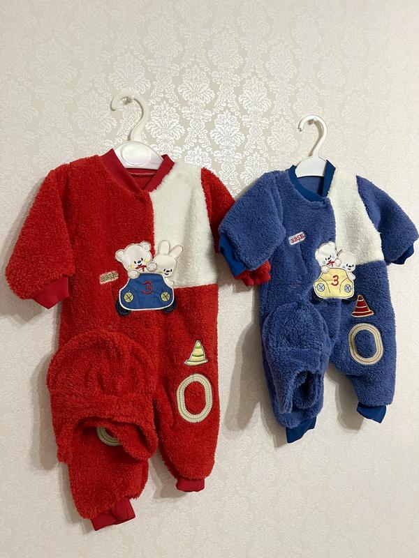 Очень тепленькие комбинезоны для мальчиков и девочек из махры В комплекте идет шапочка в цвет Размеры красного - 2, 3 Размер синего - 1