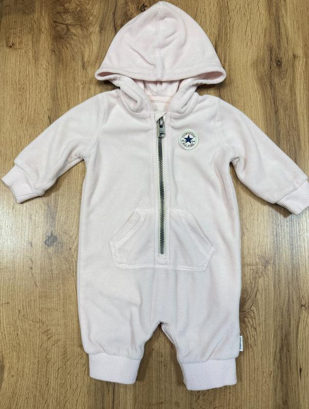 Очень красивый, стильный ромпер в нежно розовом пастельном цвете. Бархатный - приятный к телу. Размер 0-3 мес. Состояние идеал