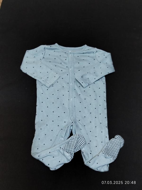 Симпатичный человечек красивого синего цвета в отличном состоянии на ребёнка 9-12 месяцев. Длина всего изделия от плеча до пяточки 57 см, длина по внутреннему шву штанины 22 см, полуобхват груди 26 см, длина рукава на 24 см, длина по стопе в спокойном состоянии 11 см, тянется до 13 см. Ткань хлопок, тянется. Модель 6051