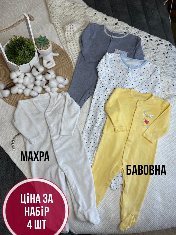 1+1=3 🌿 лот 4 шт: человечек хб + махровый хорошего качества 3-6 мес 62-68 комплект для ма...