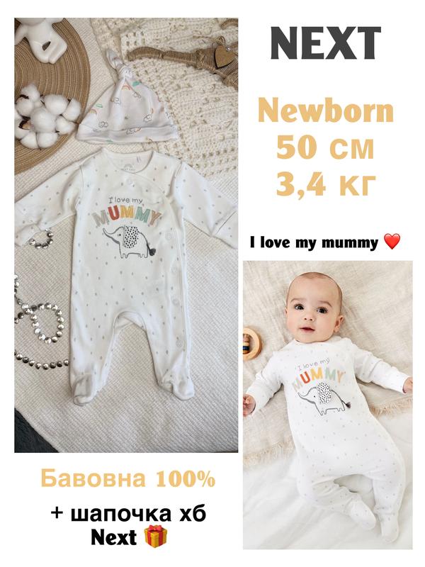 1+1=3 🌾 человечек + шапочка next 0-1 50-56 i love my mummy для новорожденных