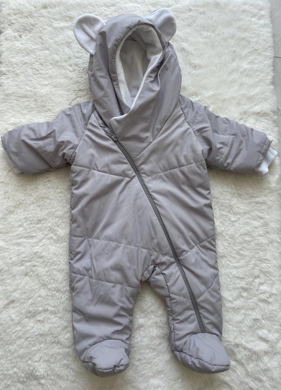 Теплий комбінезон для малюка Одягнений лише 2 рази Розмір 0-3 місяців Стан ідеальний Колір сірий з білим Ручки закриваються Ніжки закриті