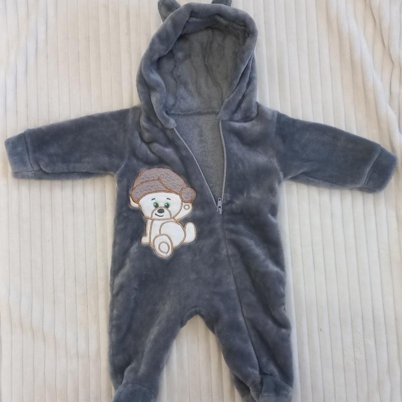 Человечек серого цвета, до 3 месяцев, 62 размер, мягкий, теплый, идеальный для осенних прогулок. На замке.