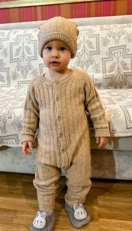 Теплий вʼязаний чоловічок + шапка для немовлят Стан ідеальний Колір бежевий Розмір 12-18 місяців 80/86 ( на фото дитині рік) Додаткові питання в смс