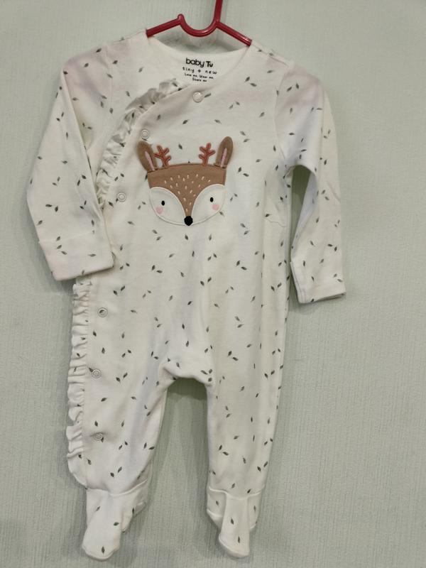В идеальном состоянии человечек на ребенка 3-6мес. Длина от плеча до пяточки 54см, длина по спинке до памперса 35см, длина рукава с плечом 31см, ширина подмышками 25см. Стан новым.