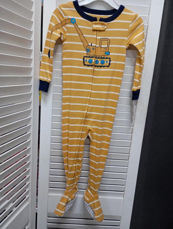 Это хлопковый человечек-пижама Carter's для мальчика с принтом строительной техники. Размер:на 18 месяцев