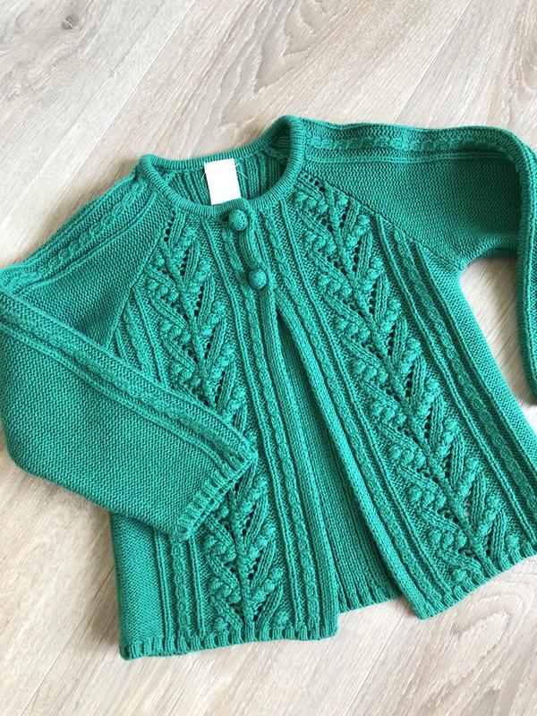 Кофточка свитер для малышки. Состояние идеал, без нюансов. Застёгивается только на 2 верхние пуговицы. Насыщенного зелёного цвета , размер 12-18 мес, но лучше ориентируйтесь по замерам.