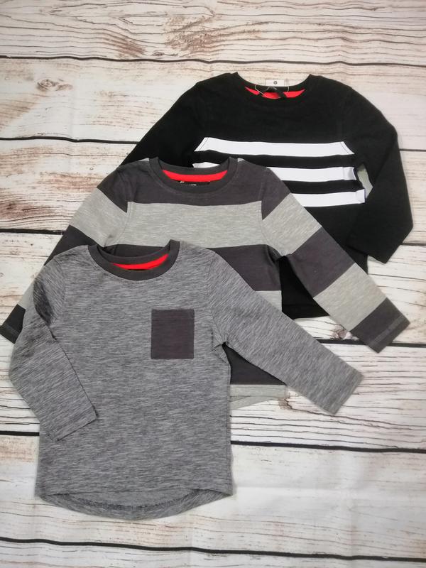 Набор базовых лонгсливов от George (Англия), с официального сайта. Новые, с этикеткой. Размер 1-1,5 р. (80-86 см). Цена за 1 шт. - 80 грн Набор - 220 грн Замеры: черный - длина 37 см, рукав 31 см, пог 29,5 см серый с карманом - длина 37 см, рукав 29 см, пог 29 см серый в полоску - длина 37 см, рукав 32 см, пог 28 см