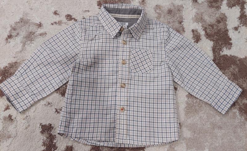 Рубашка для малыша в клетку с длинным рукавом. Состояние идеальное, практически новая, одевали 1 раз.