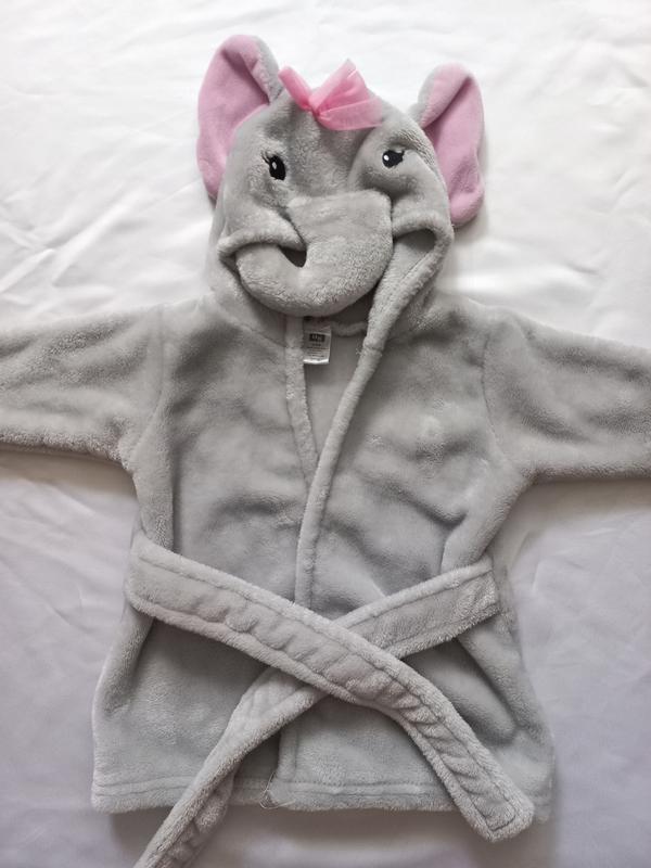 Халатик детский с капьюшоном "Слоненок". На девочку от 0 до 9 месяцев. 100% полиэстр. Стан нового.