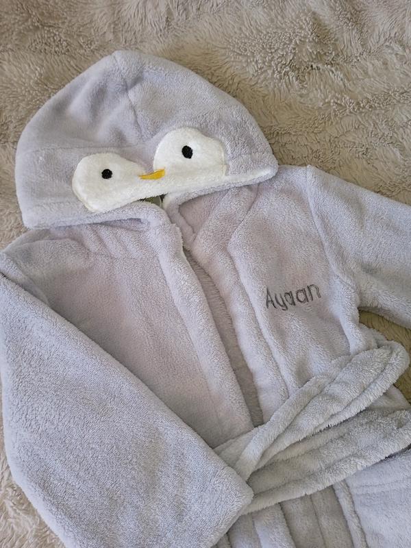 тепленький махровый халат. может быть как девочке так и для мальчика размер 80 (9-12 мес) но будет дольше