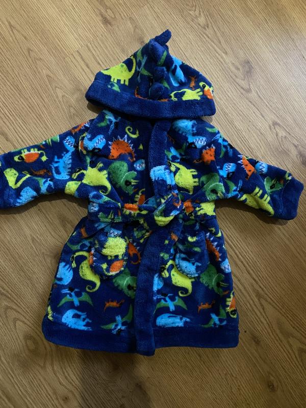 Тепленький халатик, в очень красивом состоянии 6-9 месяцев Принт Динозаврики. 100% полиэстер