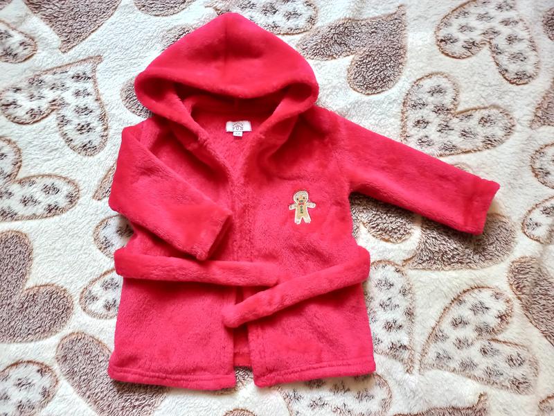 Халат красного цвета. Теплый, пушистый. Подойдет как мальчику так и девочке. Состояние очень хорошее. Возраст 9-12 месяцев.