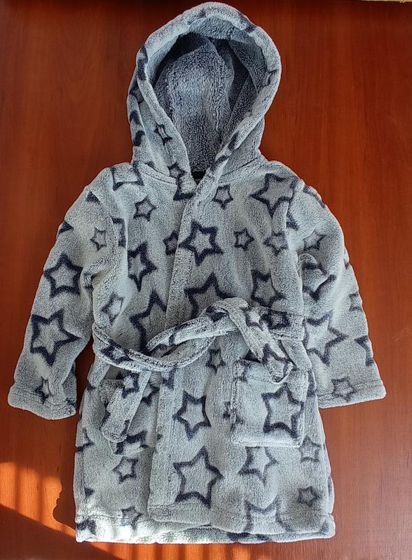 Халат махровый, подойдет для мальчика или девочки. Длина 48 см полуобхват плеч 30 см. длина рукава 30 см. по наборке 12-18 месяцев но подходит и на 2 рочки.