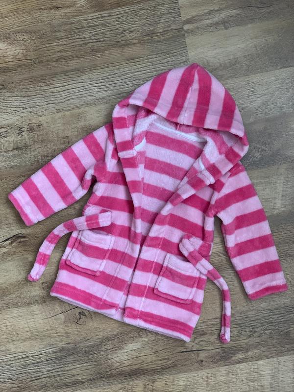 Нового состояние! Чудесный Мягусенький Флисовый Халатик с Капюшоном для Малышки тм «Early days» р.6-12мес./80см. Цвет розовый/нежно-розовый в полоску. Пояс пришит, есть два накладных кармашка. Длинна 40см./ плечи 30см./ пог 30см./ рукав от плеч.шва 26см. В Идеальном состоянии. Оригинал.