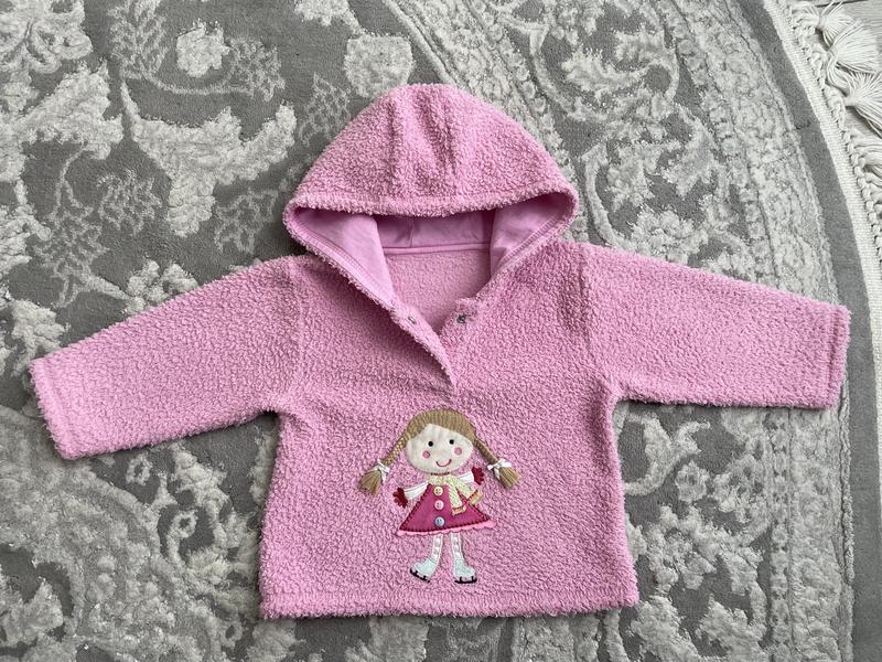 Тепла кофтинка з капюшоном на дівчинку 6-9 місяців (орієнтуйтеся по замірах) від George 📏 Заміри: Довжина від плеча до низу - 32 см. Рукав від плеча - 23 см. Ширина під ручками - 28 см. 🏷 Ціна - 50 грн.