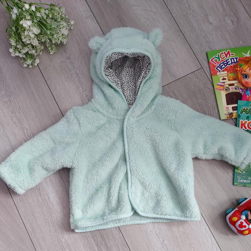 Тепла кофта ведмедик Next.Приємна на дотик, дуже мякенька і тепла. В ідеальному стані Розмір 68-74 Колір м'ятний