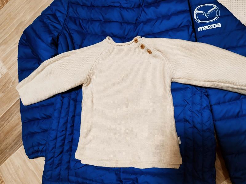 стильный свитерок от zara ,цвет молочный .вязка.состав 100%котон .возраст на фото длина 36см . в груди 28 рукав 34 состояние приличное почта укр и новая
