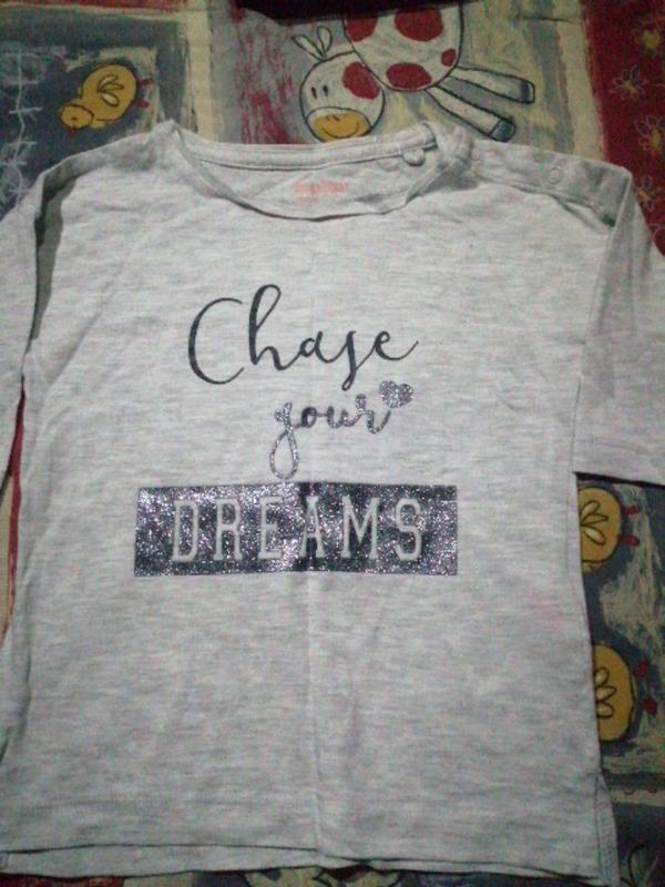 Обычная светло-серая кофточка для девочки. Рукав 3/4. Не теплая, с надписью на кофте. Товар новый, привезенный из Германии.