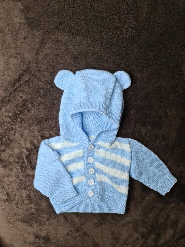 Вязанная кофточка с ушками. Ручная работа. На ребёнка 3-6 месяцев.