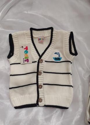 69(23) Дитяча жилетка Колір молоко Країна виробник: Туреччина Розмірність: від 6 м. до 4 р. Розмірна сітка: 0/1,2/3,3/4 ЗАМІРИ: Розмір: 0/1 Ширина плечей: 20 см. НО грудей: 24 см. НО талії: 23 см. НО стегон: 21 см. Довжина виробу: 28 см Розмір: 2/3 Ширина плечей: 22 см. НО грудей: 26 см. НО талії: 27 см. НО стегон: 23 см. Довжина виробу: 34 см. Розмір: 3/4 Ширина плечей: 23 см. НО грудей: 27 см. НО талії: 29 см. НО стегон: 24 см. Довжина виробу: 36 см.