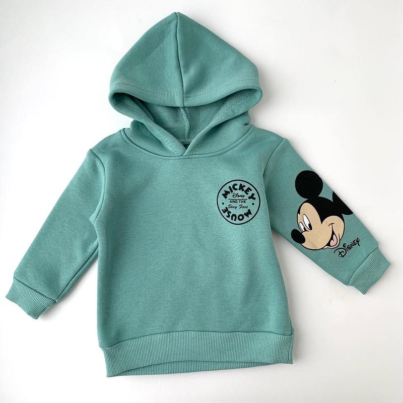 Ткань: трехнитка на флисе Премиум материал, не скручивается Кофта с капюшоном и микки на рукаве Размер: ▪️18м (86см) ✔️18м Кофта: длина 34см,рукав 25см,ширина 28см