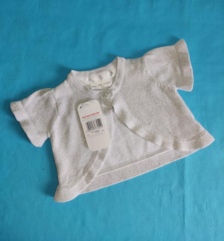 ошатна кофтинка на малечу, новая с биркой цвет белый с металлизированной нитью ткань мягкая, приятная на ощупь Р. 56, замеры: длина 20 см: ПОГ - 24 см