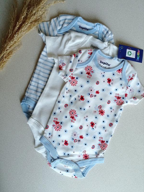 удобный и качественный набор боди на короткий рукавчик от бренда Lupilu в наличии размеры 50-56 и 74-80см, продано будет хорошо дольше, большеомерки цена поштучно 70грн/шт набор 190 грн замерыдам по желанию с радостью ответь на все Ваши вопросы 💙💛