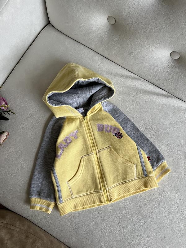 Детский хлопковый флисовый свитшот на замочке бренда Baby Club, C&A Подойдет как мальчику так и девочке. Нет собачки на молнии, можно поставить скрепку. Состояние идеал. Размер по набору 68. Замеры: 1/2 ОГ 28-32 1/2 ОТ 29-32 Длина 29 Рукав от шеи 31